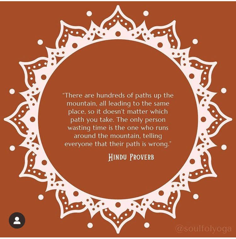 “There are hundreds of paths up the mountain, all leading the same place, so it doesn’t matter which path you take. the only person wasting time is the one who runs around the mountain, telling evryone that their path is wrong.”