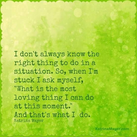 I dont always know the right thing to do in a situation. So, when I’m stuck I ask myself, “What is the most loving thing I can do at this moment.” And that’s what I do.